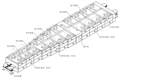 • 在橫拉設(shè)備中烘箱主要為薄膜預(yù)熱、拉伸、定型、冷卻過程中提供一個密閉保溫的空間,并且烘箱內(nèi)部按區(qū)域功能及一定間距為由隔斷板間隔開。